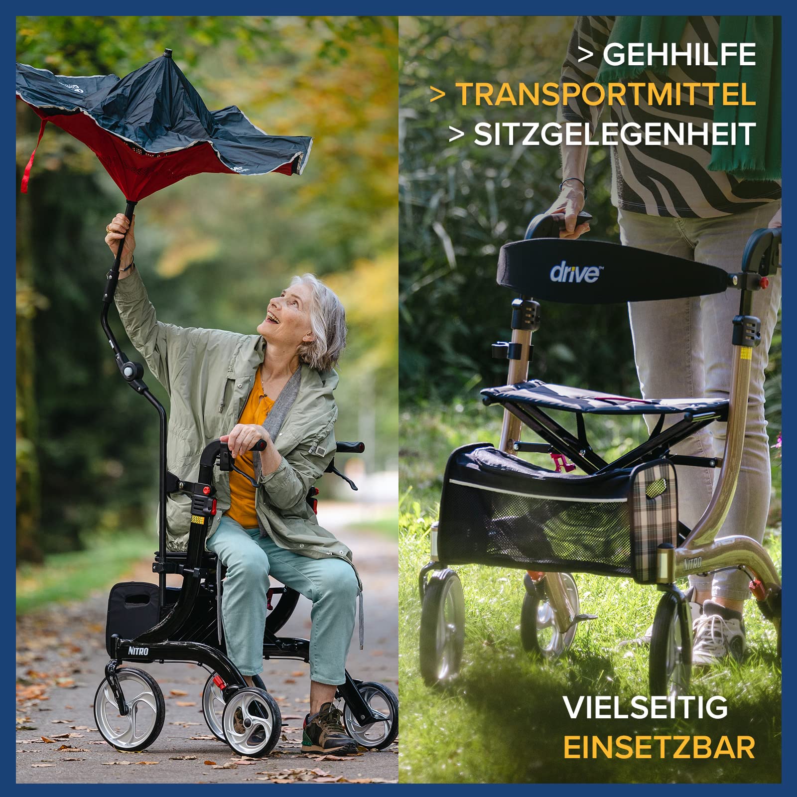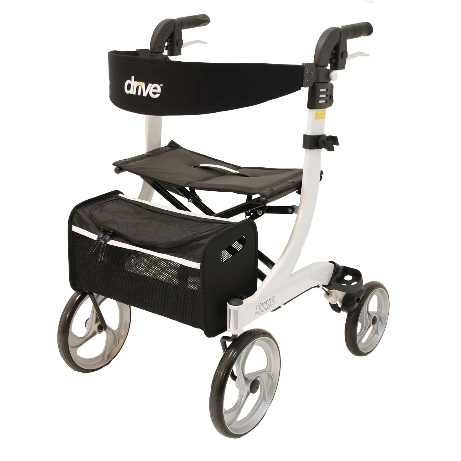 Drive Medical Rollator Nitro – eleganter Aluminium-Rollator mit großen Rädern, Sitz und Faltmechanismus