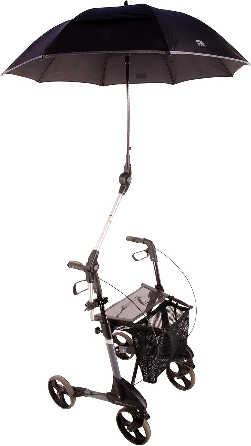 ZUBEHÖR – MPB Rollatorschirm ST 22/25 SI – Silberbeschichtet mit Halterung und Gelenkarm, Regen- und Sonnenschutz