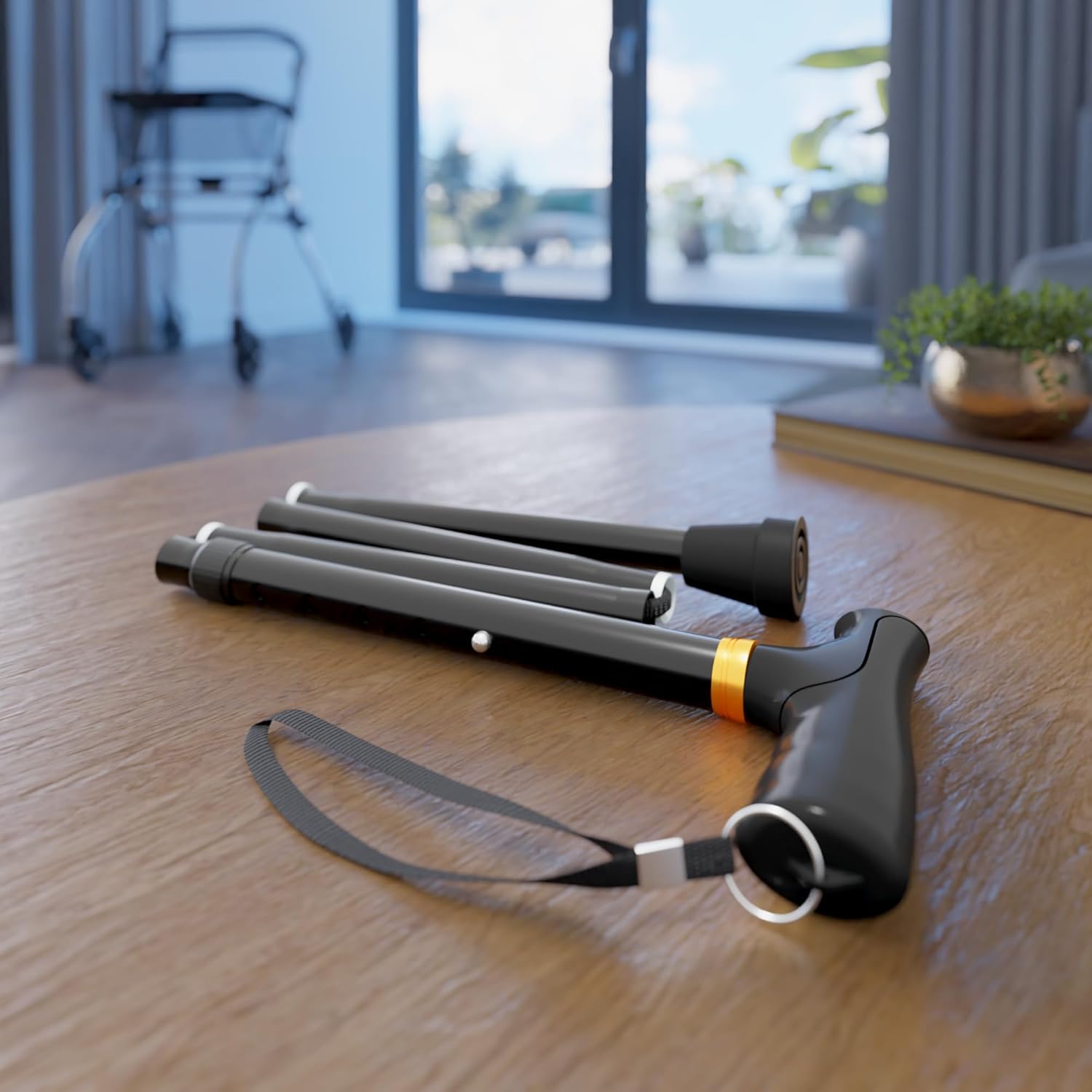 Weinberger Gehstock – leichter, faltbarer Aluminium-Gehstock mit Höhenverstellung und rutschfestem Fuß